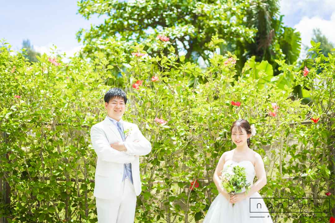 恩納村の綺麗な海を背景に撮影ができるのはもちろん、緑の中でも撮影できるので、様々な写真が残せます。