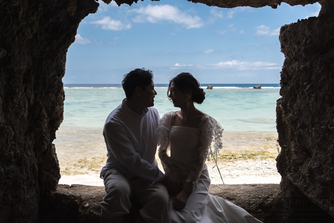 ビーチには岩場もあり様々な背景で撮影できる事も魅力の一つです。