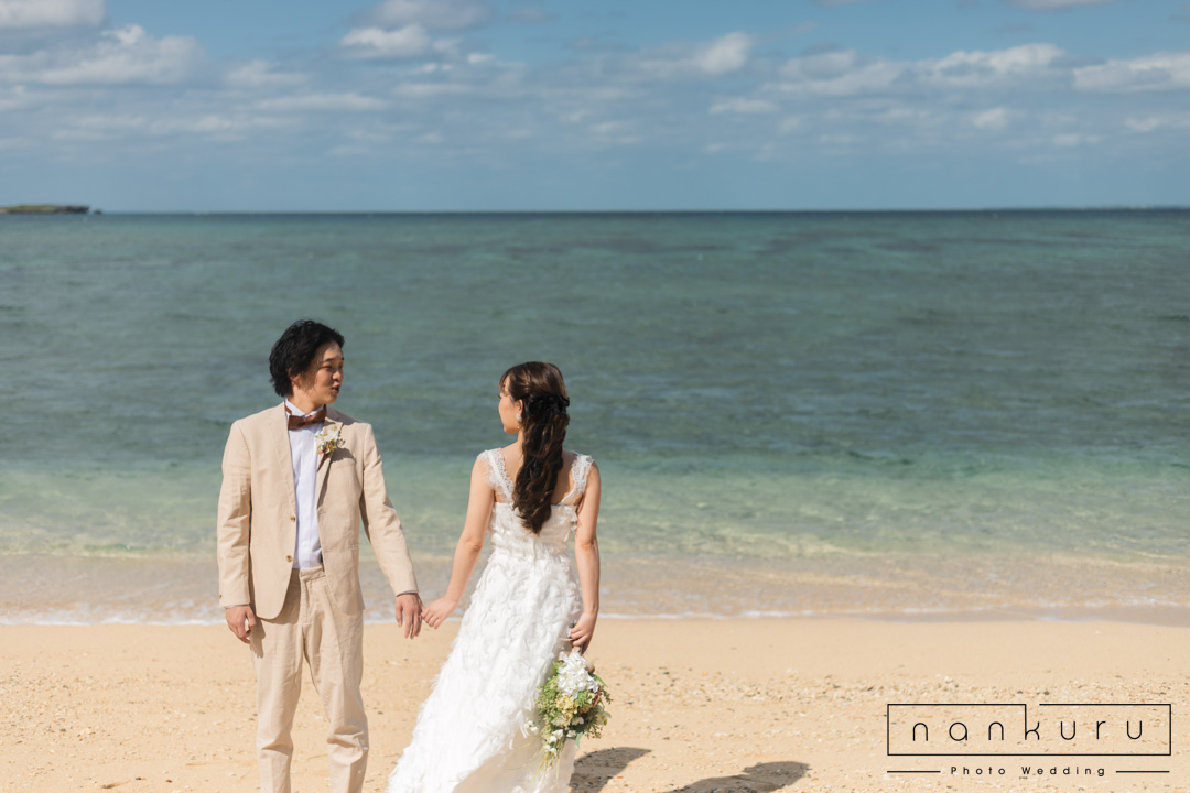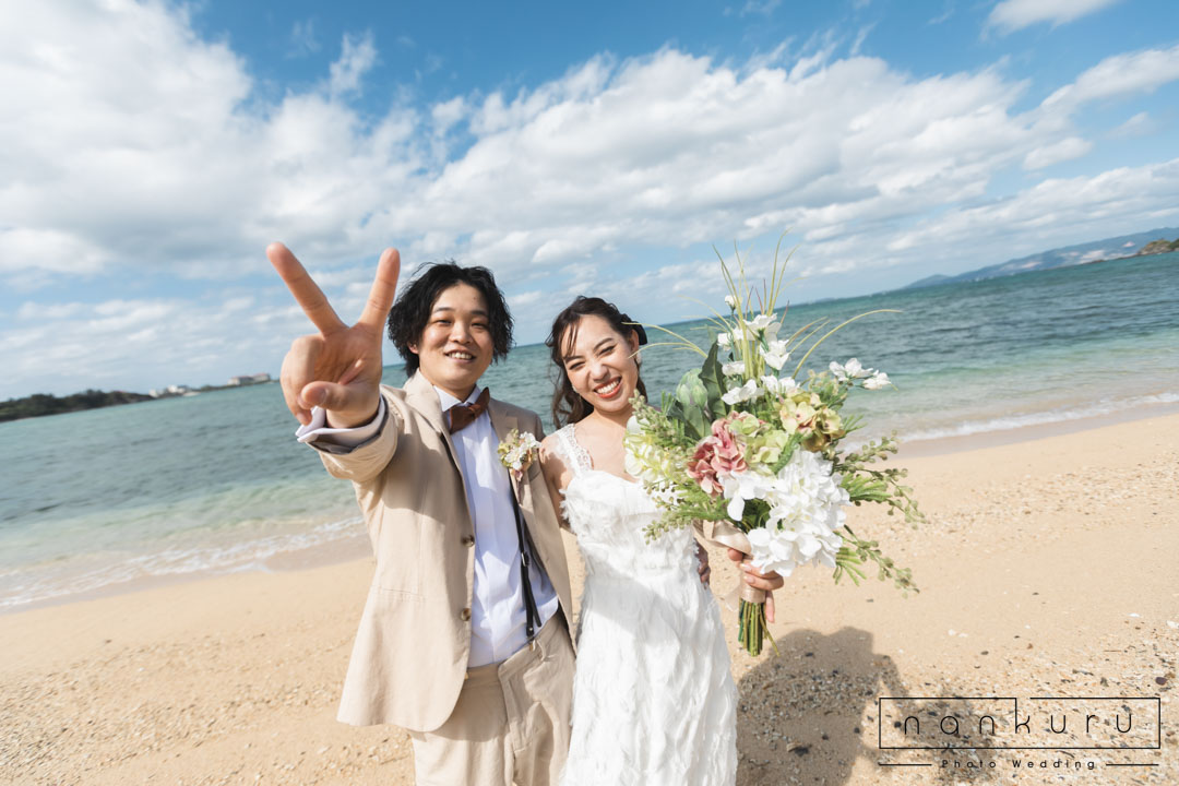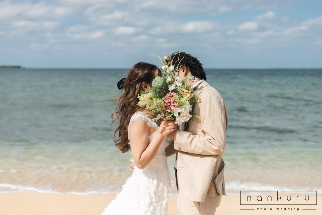 nankuru photo weddingでは1番人気の恩納村ビーチフォトプラン。