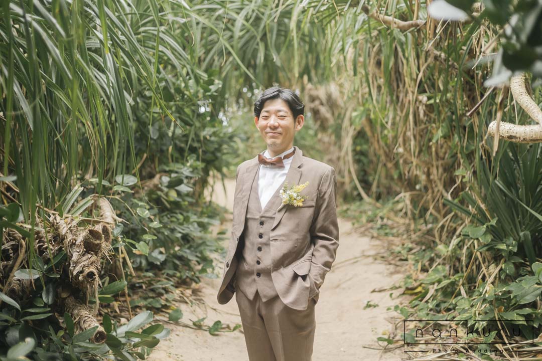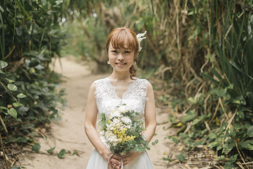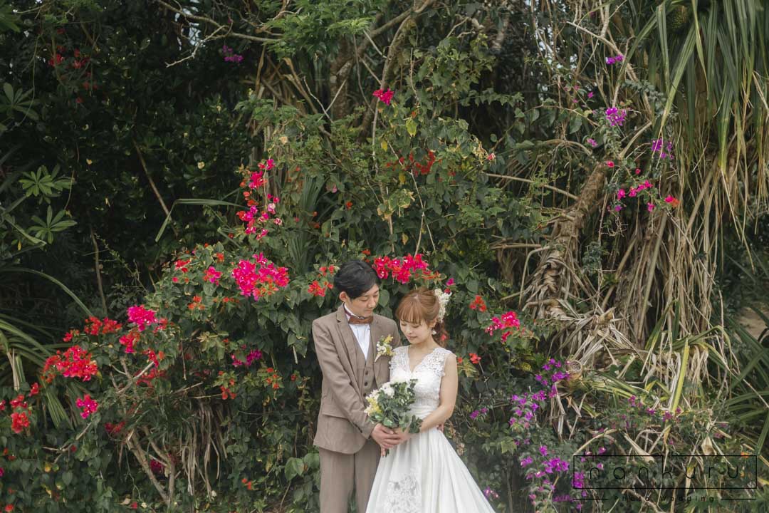 恩納村の綺麗な海を背景に撮影ができるのはもちろん、緑の中でも撮影できるので、様々な写真が残せます。