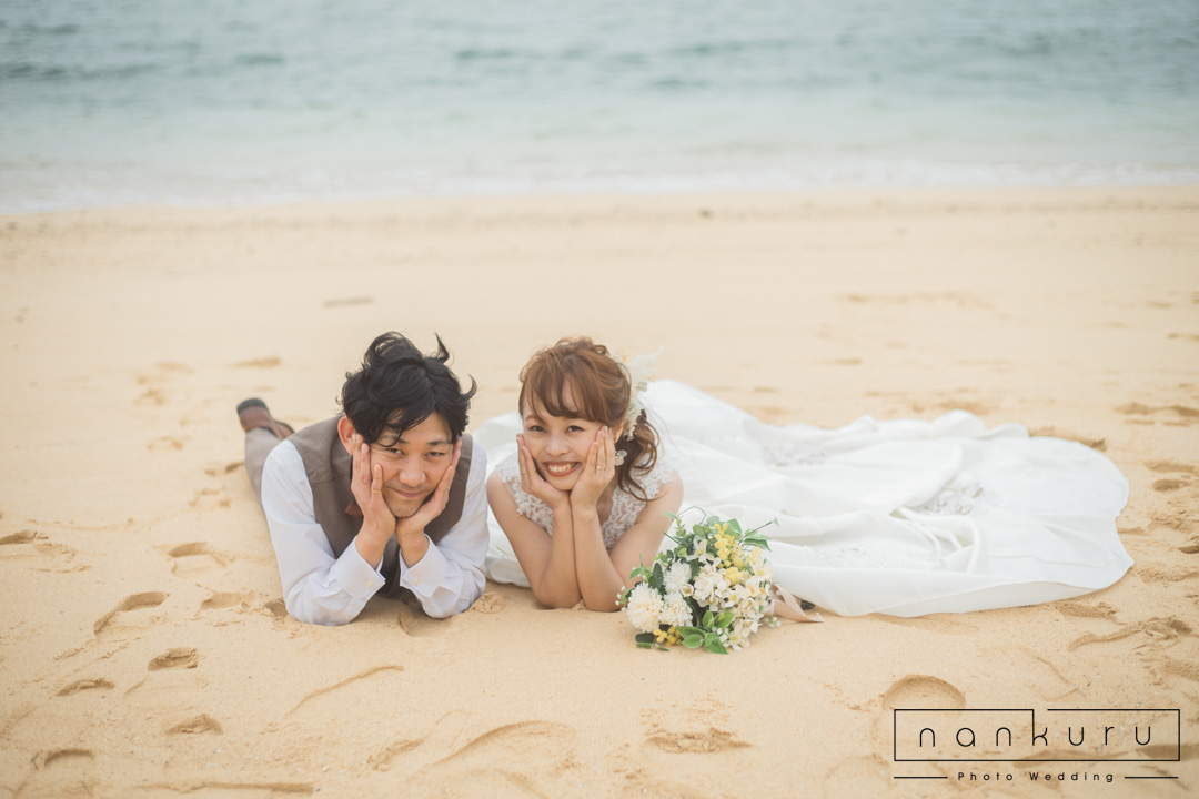 nankuru photo weddingでは1番人気の恩納村ビーチフォトプラン。
