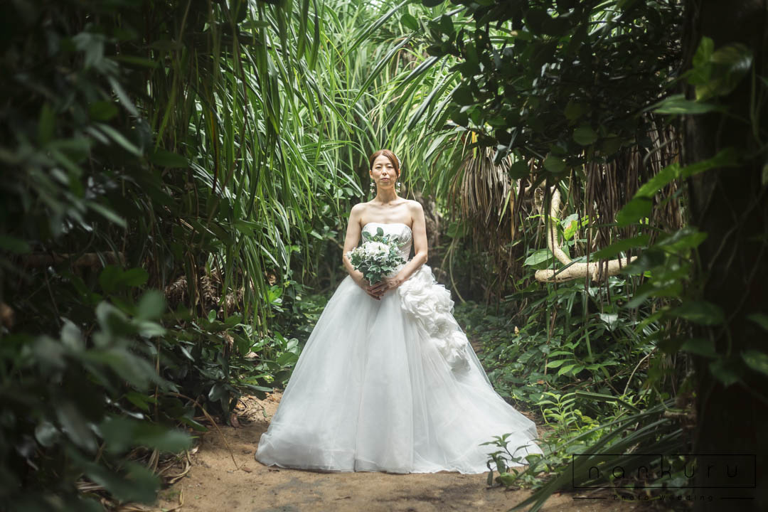 恩納村の綺麗な海を背景に撮影ができるのはもちろん、緑の中でも撮影できるので、様々な写真が残せます。