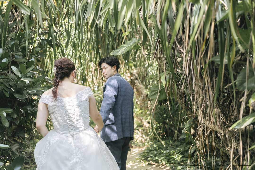 恩納村の綺麗な海を背景に撮影ができるのはもちろん、緑の中でも撮影できるので、様々な写真が残せます。