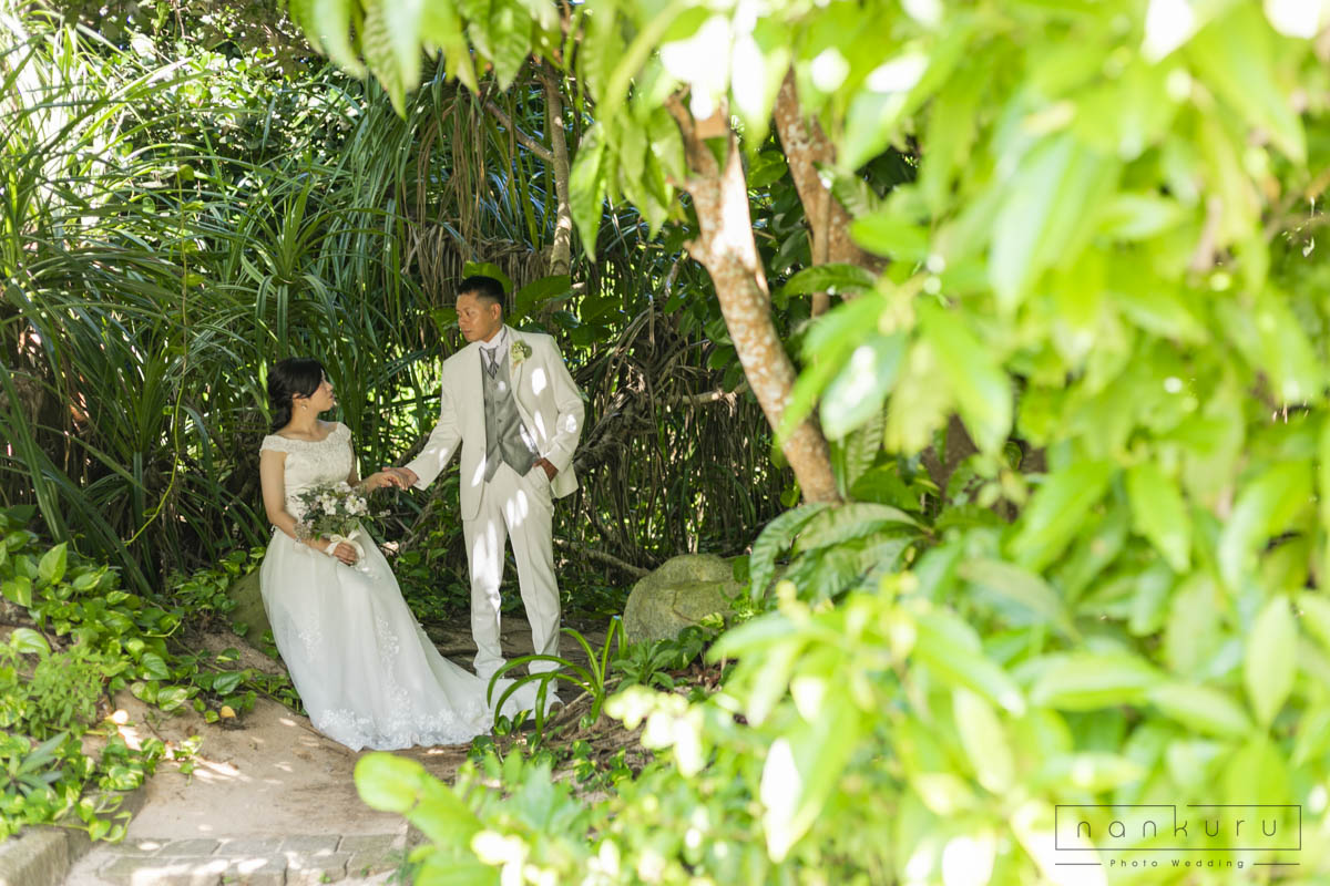 恩納村の綺麗な海を背景に撮影ができるのはもちろん、緑の中でも撮影できるので、様々な写真が残せます。