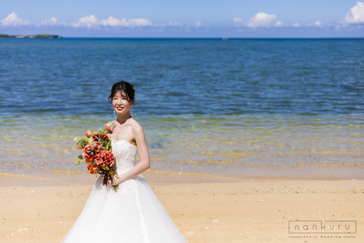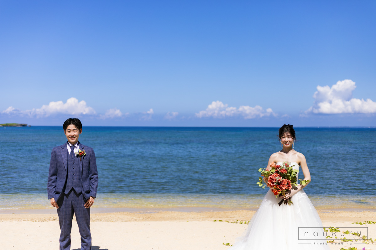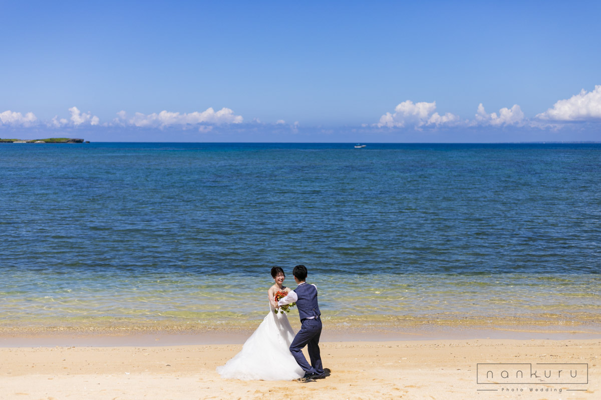nankuru photo weddingでは1番人気の恩納村ビーチフォトプラン。